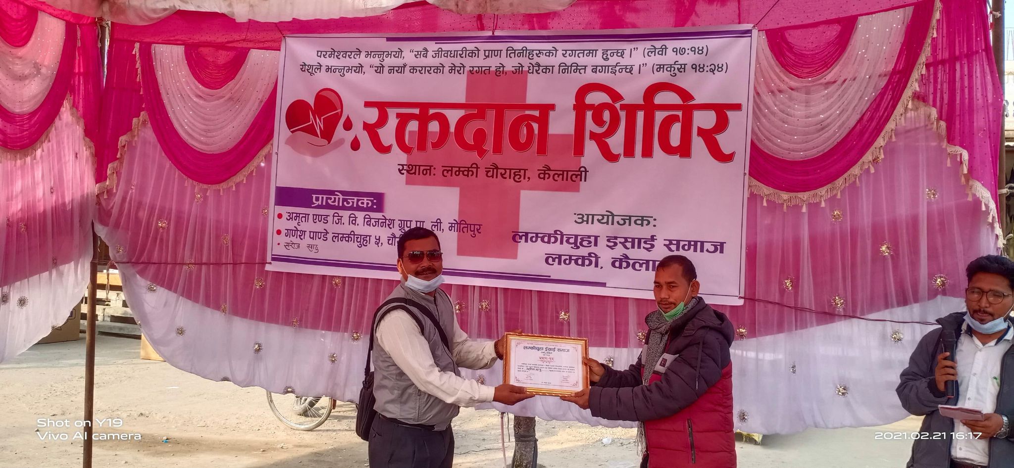 सो रक्तदान कार्यक्रम लम्कीचुहा इसाई समाजका अध्यक्ष देवेन्द्र रानाको संयोजकत्वमा सम्पन्न भएको थियो ।