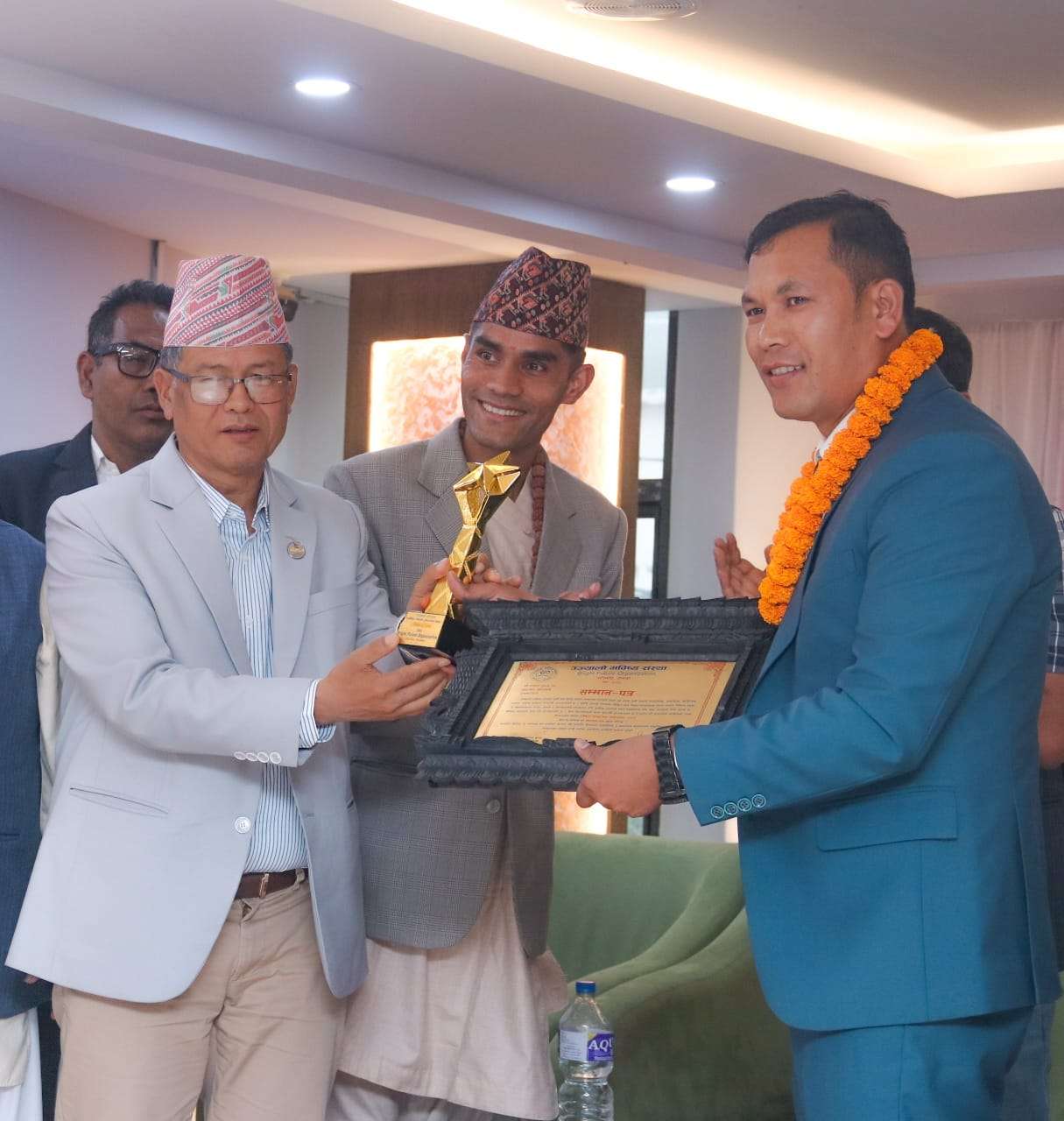 - वहाँ कानुन न्याय तथा संसदीय मामिला मन्त्री धनराज गुरूङ बाट सम्मानित हुनुभएको हो ।